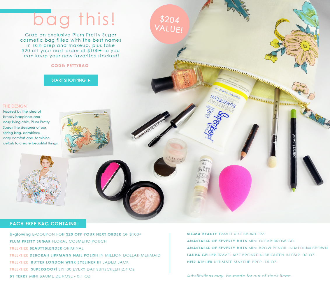 A spring beauty bag with 125 dollars purchase on bglowing.